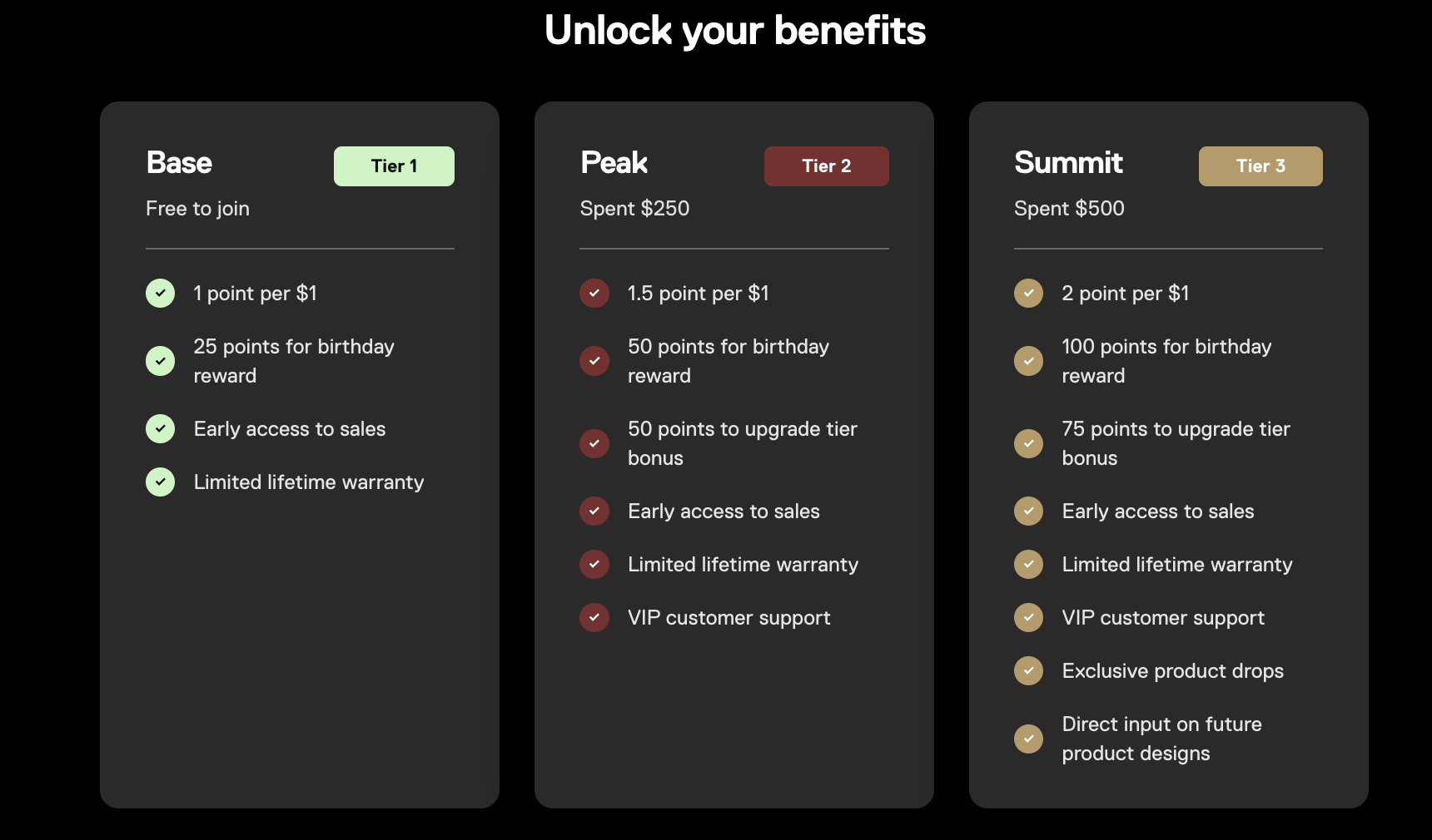 After reaching $500 in total spend, you’ll unlock the Summit tier.