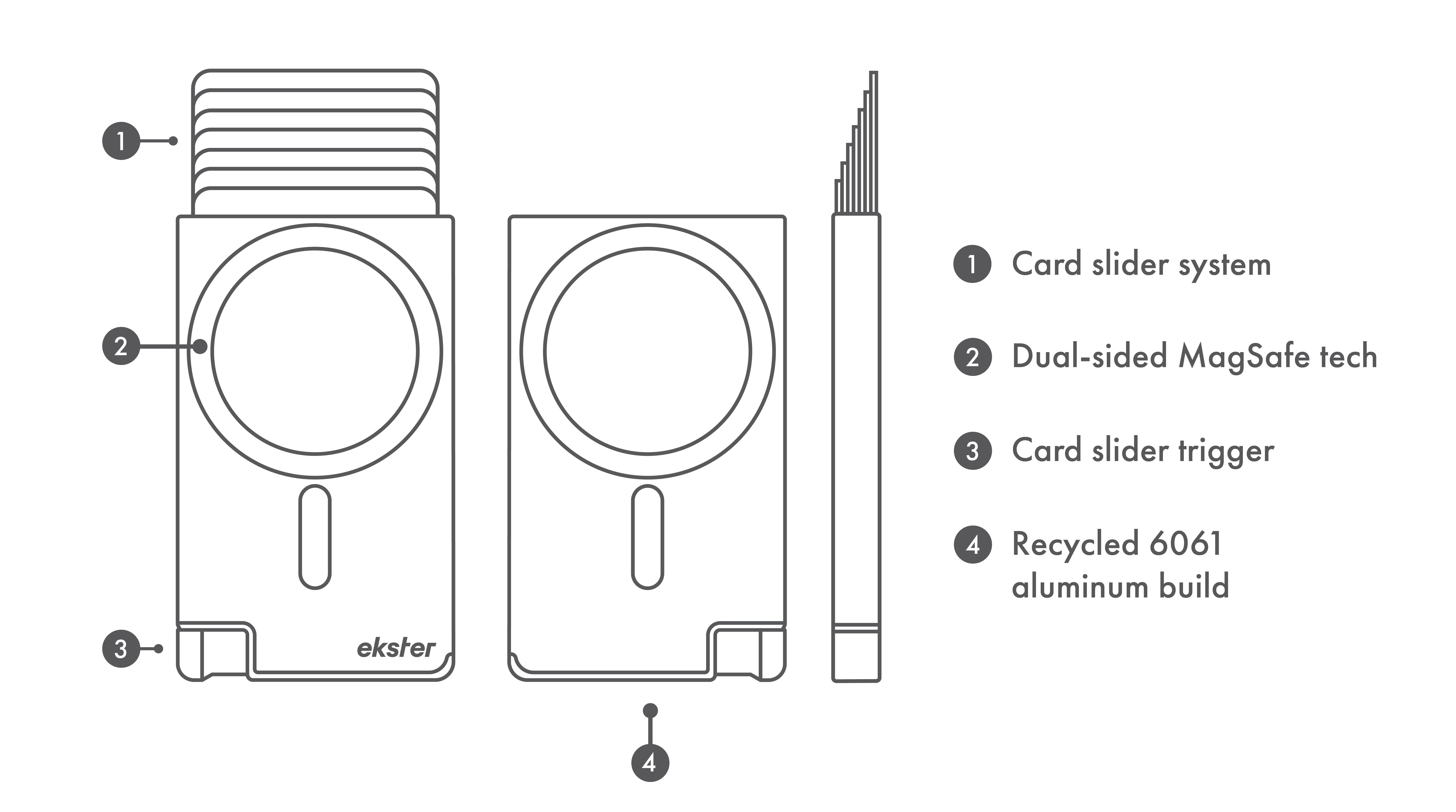 - Press the button on the bottom corner to eject Ekster cards from the cardholder