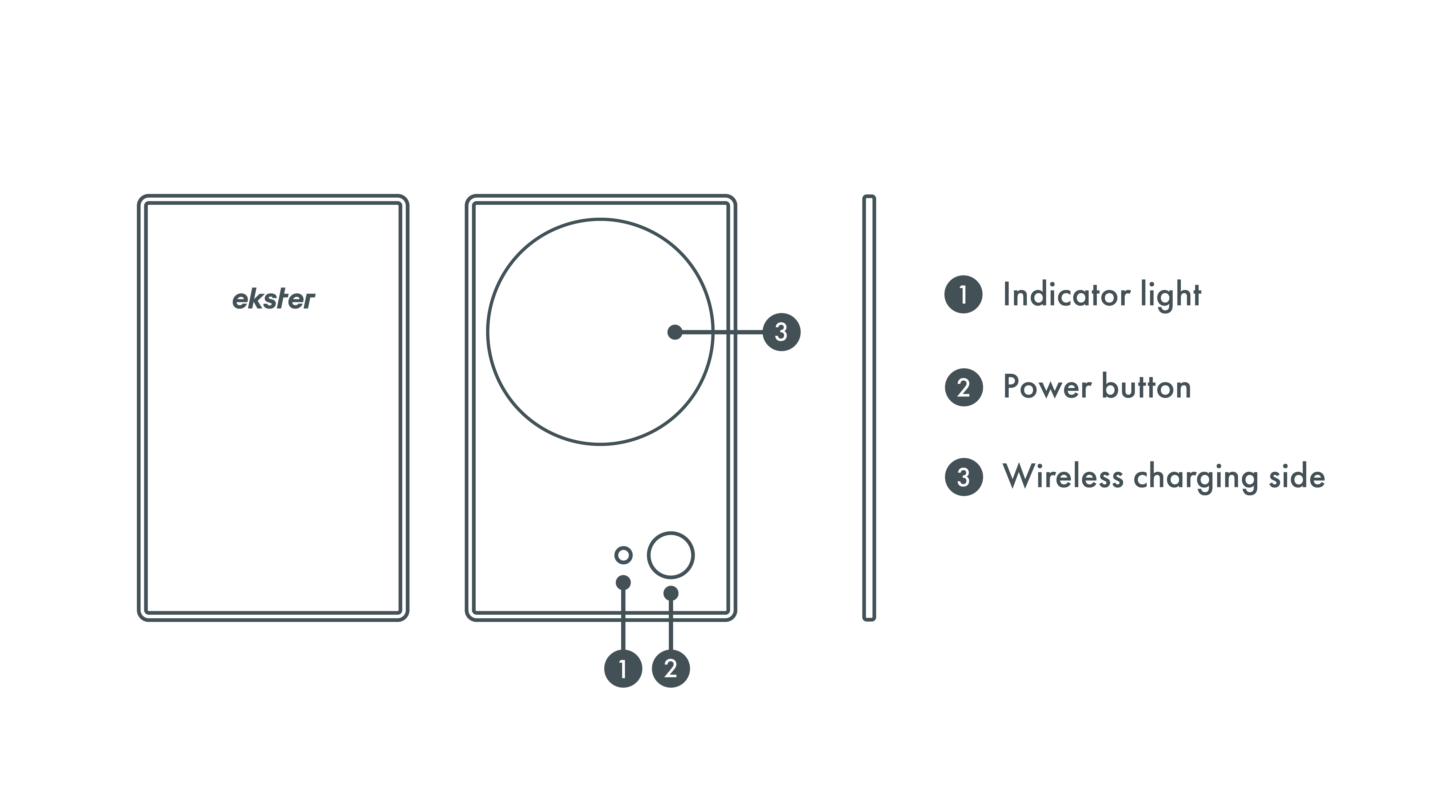 - To wirelessly charge your Finder Card Pro, ensure the Ekster logo side is positioned for charging.